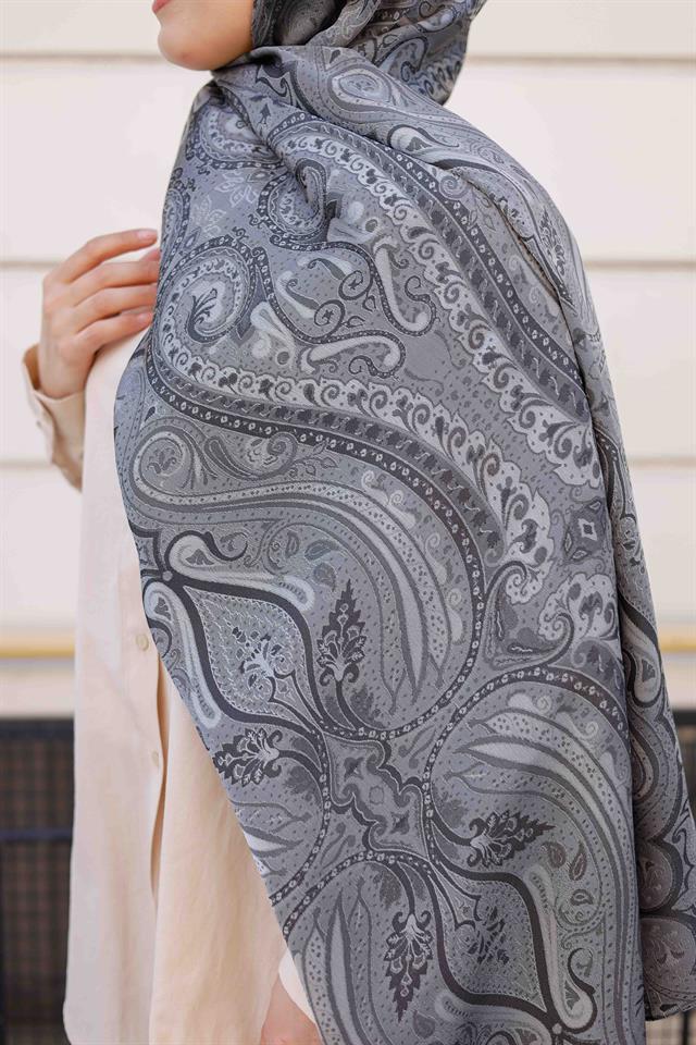 Etro Desen Premium Şal Gri